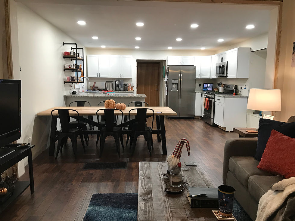 This 3 bedroom 2 bath home underwent a full remodel on the main level. Three small rooms were opened up into 1 large fluid living space. Correct lighting spotlights the wonderful improvements we made to the home. This project was a LOT of fun. The homeowner is a great friend and we learned a lot. Every wall we opened presented new challenges. NOTHING was straight or square in this house! From reframing the entire ceiling in the kitchen and dining to eliminate the load bearing walls without awkward headers or beams to leveling the horrible subfloor - quite the fun project!